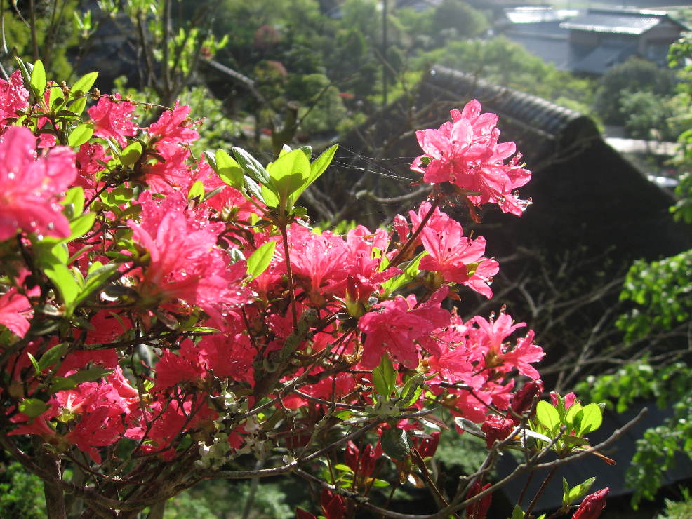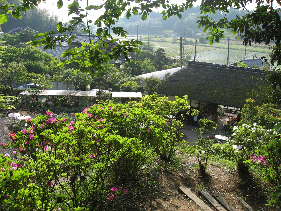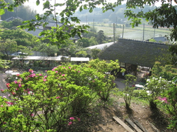 階段を上がるといい眺め。母屋が下に見えます