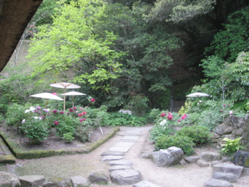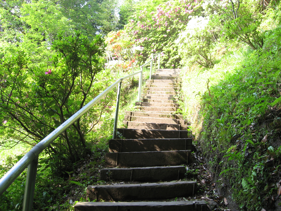 母屋裏の階段は少々急です。自信の無い方はたけやぶ前の階段から新園へどうぞ。 いくらか緩やかになっております。